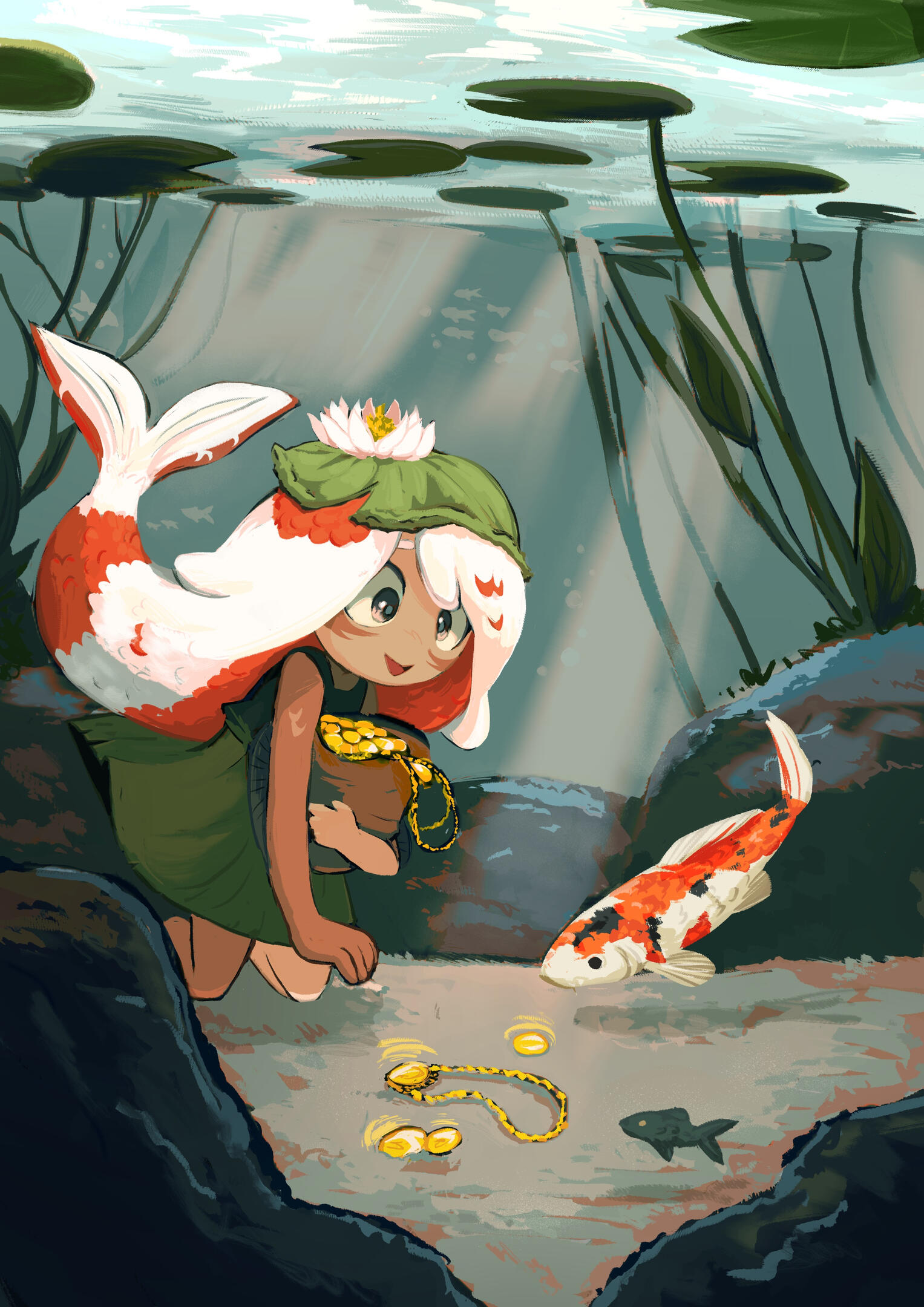 Niloo is a half-human, half-koi carp character that I initially created for fun and without a specific goal.